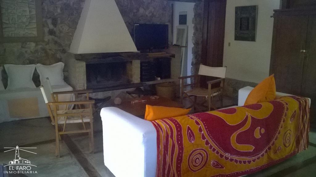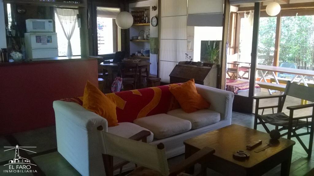 Living comedor y cocina integrados, con puerta ventana a parrillero cerrado con amplias puertas ventanas al jardín. Sofá cama.