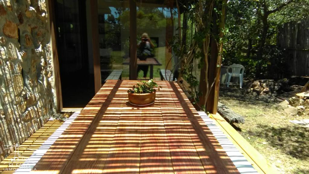 Cabaña de madera en zona de bosque, rústica, acogedora y bien equipada. Lugar tranquilo, con mucho verde.