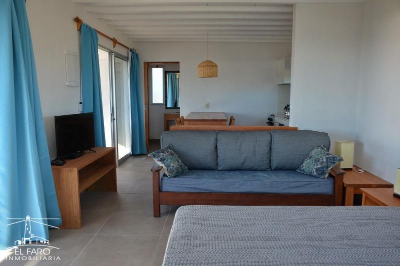 Amplio mono ambiente que combina cocina-comedor y estar-dormitorio.
