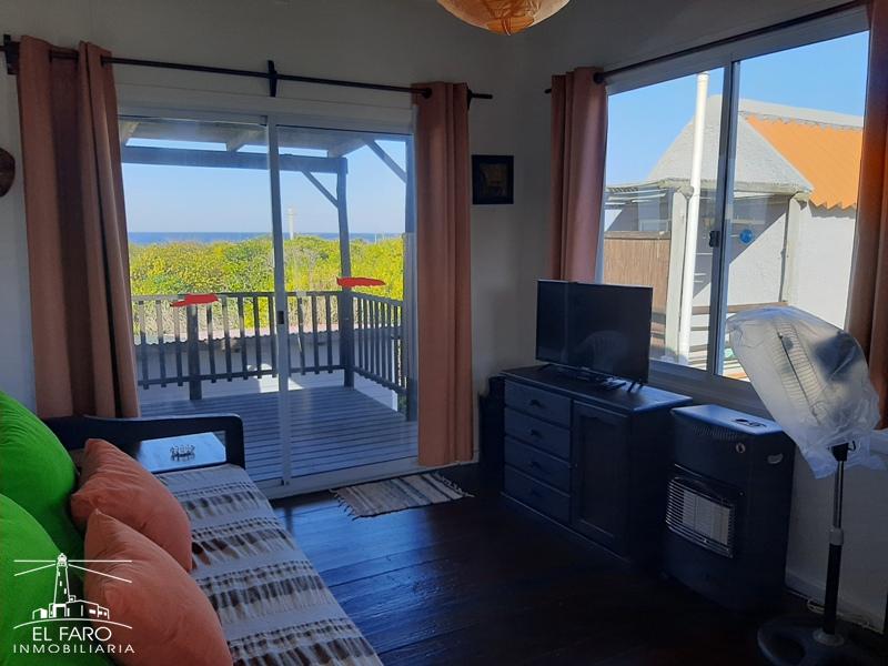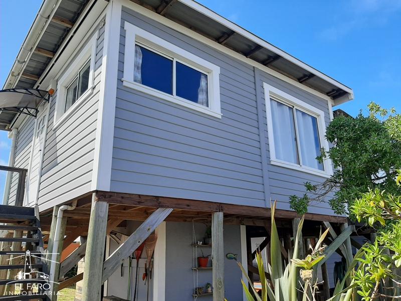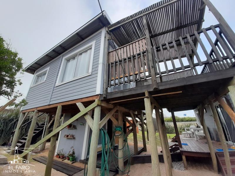 Cabaña sobre pilotes con terraza, a media cuadra de la playa.