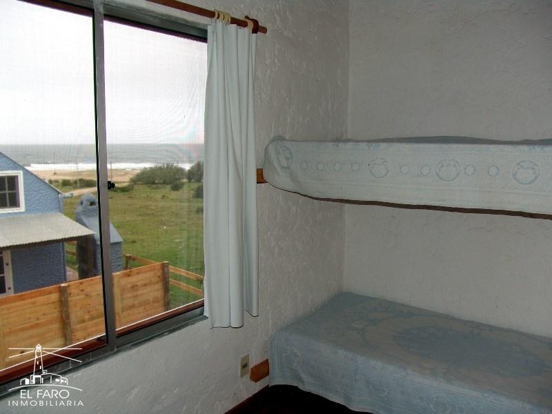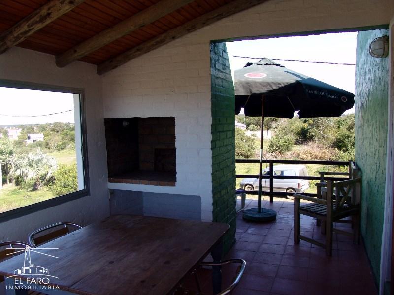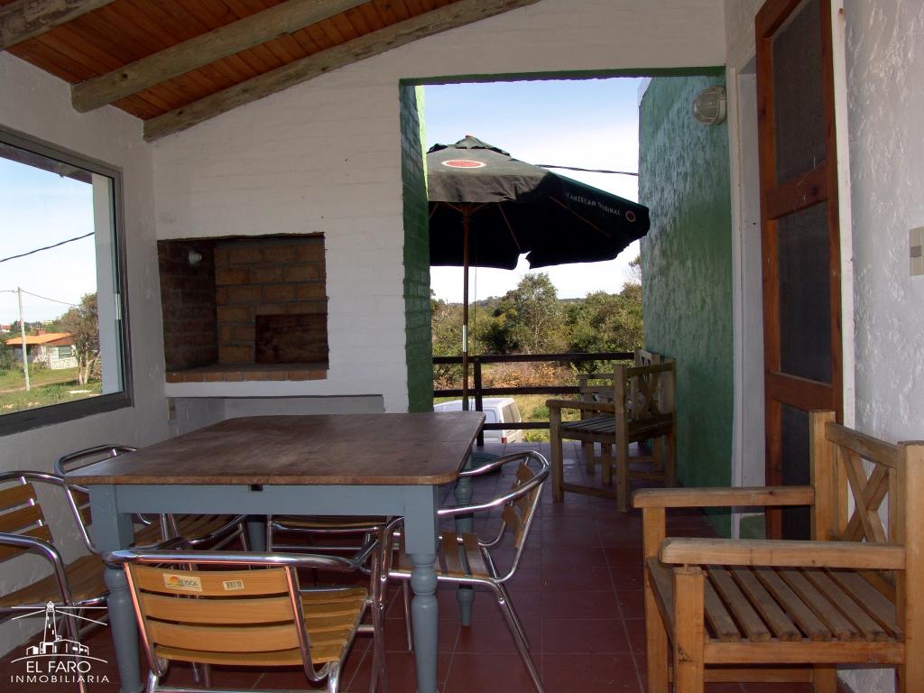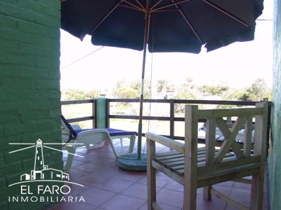 Cabaña en 2 plantas. Vista al mar desde la planta alta con amplia terraza abierta y parrillero techado.