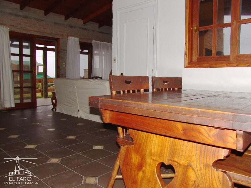 Amplio living con estufa a leña, y comedor con cocina y parrillero integrado.