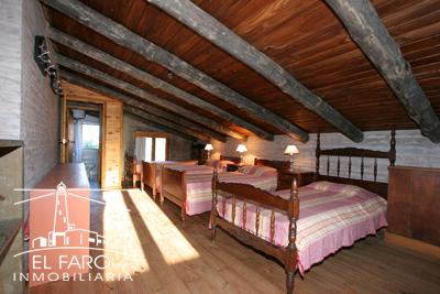 En planta alta amplio dormitorio con 4 camas individuales, dormitorio con cama matrimonial y baño completo.