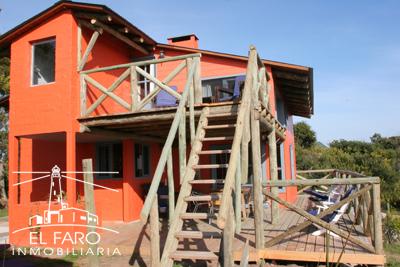 En planta baja ambiente integrado living-comedor con estufa a leña y cocina, puerta ventana de salida a terraza con parrillero techado, dormitorio matrimonial y baño completo.