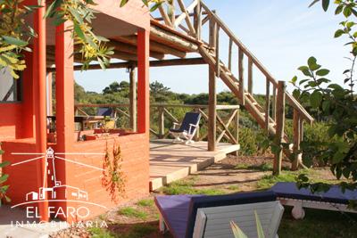 En el jardín: reposeras, hamacas paraguayas, mesas, sillas, sombrillín.