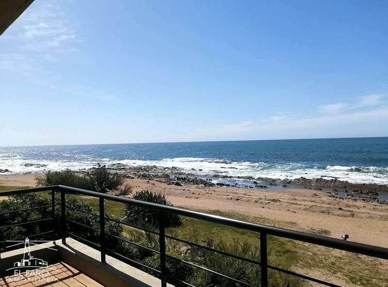 Amplio living comedor con 2 puertas ventanas a terraza al mar.