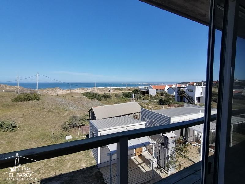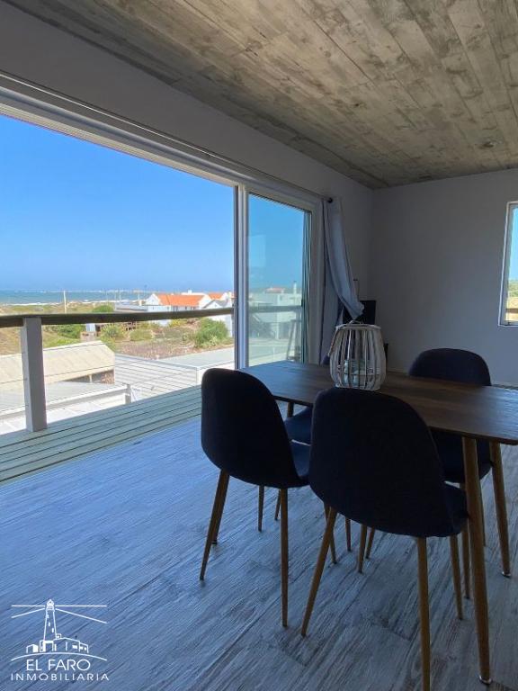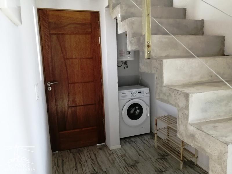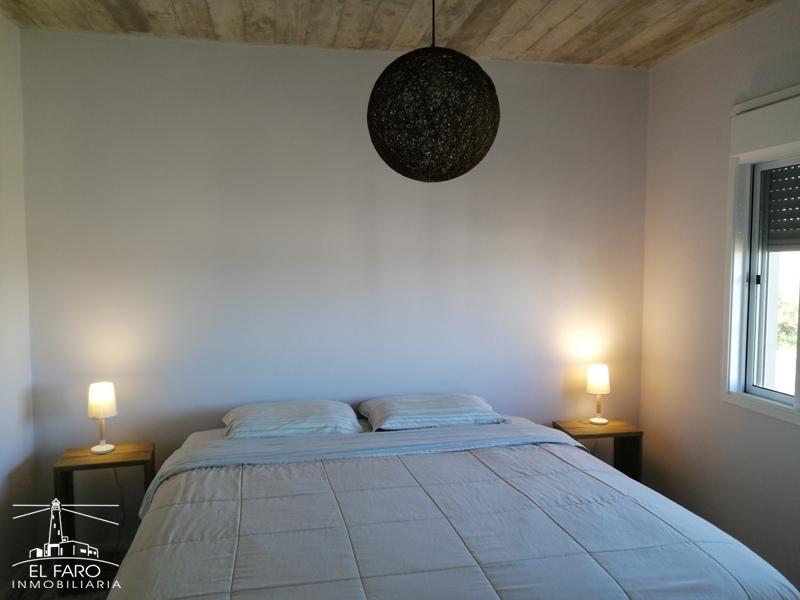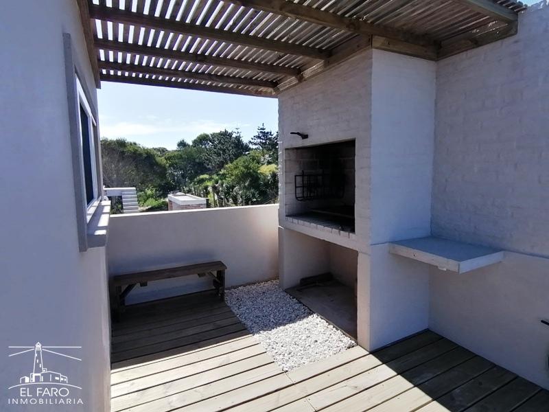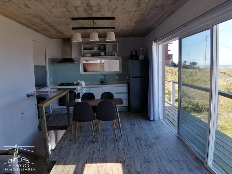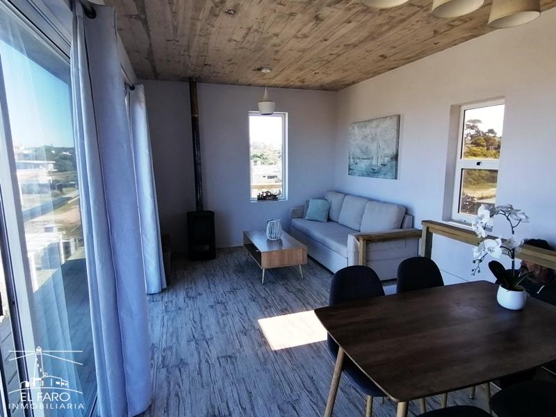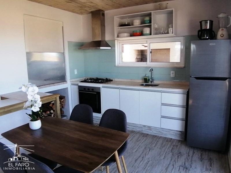 En planta alta, living comedor y cocina integrados. Sofá cama con marinera. Parrillero en la cocina y también en la terraza con sombra de pérgola.