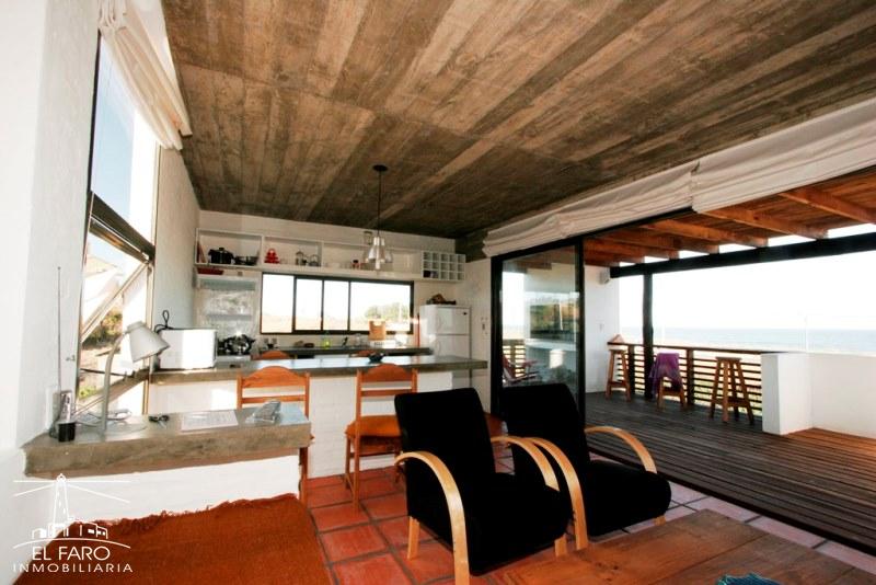 En planta alta, ambiente de estar integrado a la cocina. Amplios ventanales con acceso a terraza con vista al mar. Parrillero en la terraza.