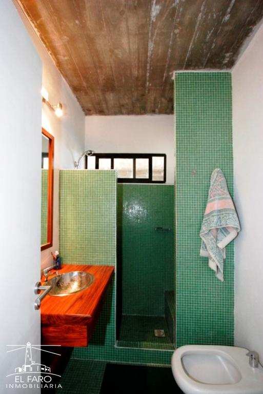 En planta baja, dormitorio matrimonial y baño. Cama de una plaza en corredor.