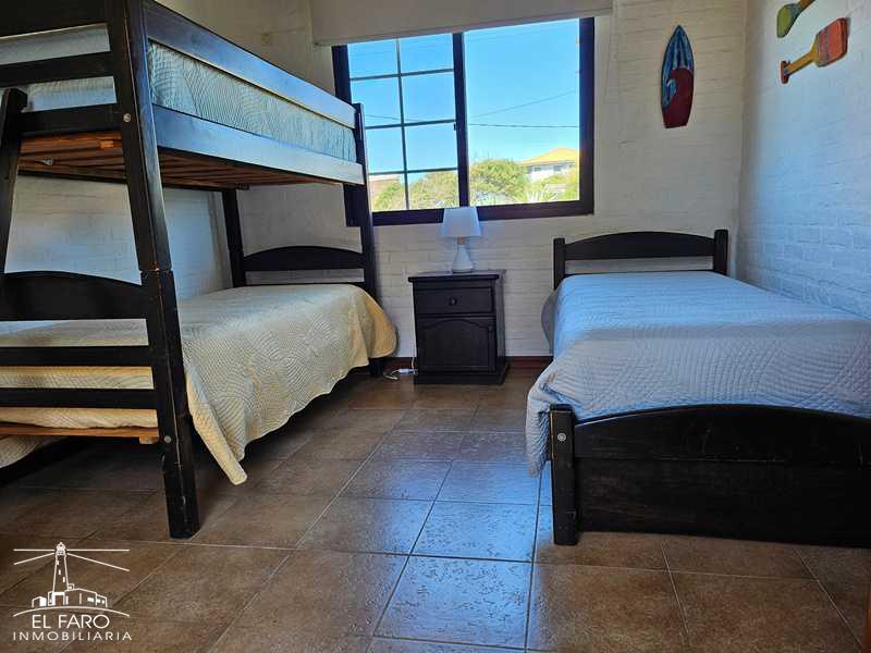 Dormitorio matrimonial, otro con 1 cama marinera y 1 cucheta, futon en el living.