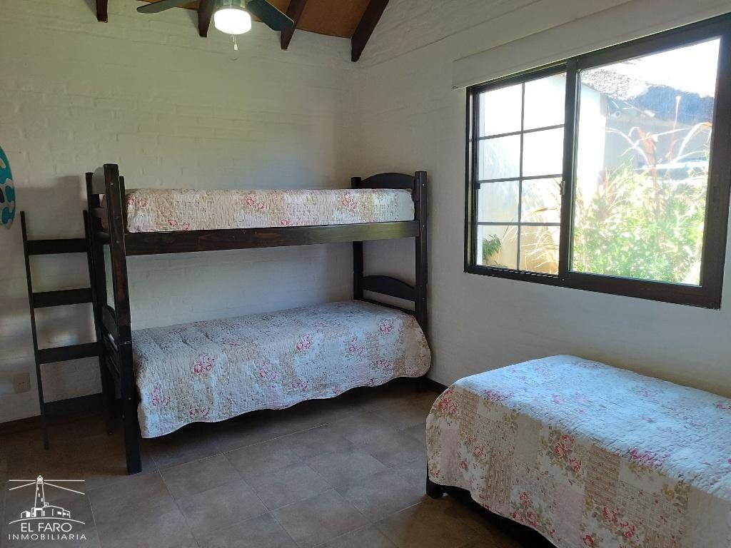 Dormitorio matrimonial, otro con cucheta y una cama individual, futon en el living.
