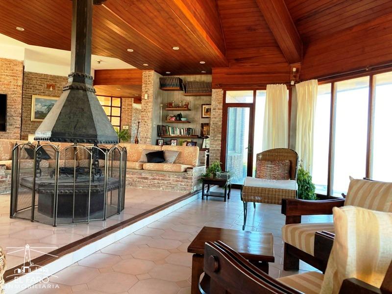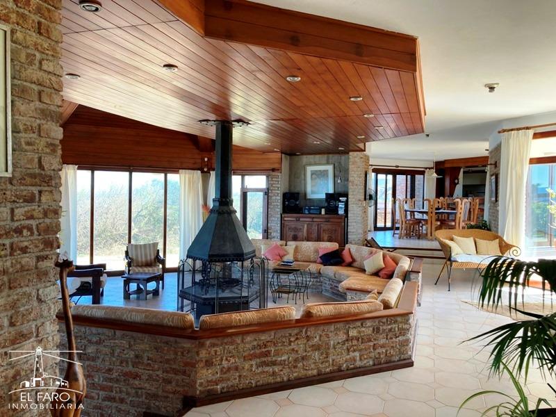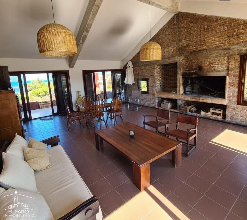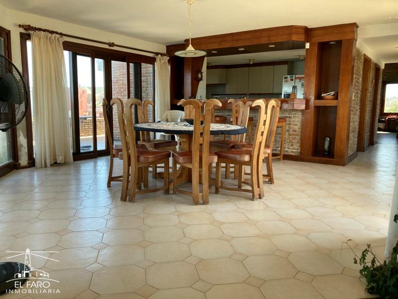 En planta principal living comedor con amplios ventanales al mar con la cocina integrada.