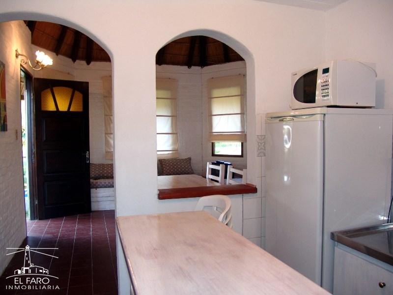 Living comedor con 2 sofás camas en mampostería, baño. Dormitorio matrimonial.
