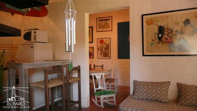 En planta baja, living con la cocina integrada. Estar comedor con puerta ventana al parrillero. Baño completo. Dormitorio matrimonial con ventilador de techo.