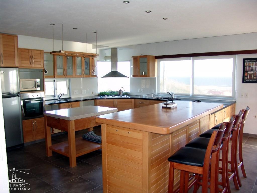 En planta baja, living comedor y cocina integrados; La cocina amplia y cómoda, con vista al mar. Puerta ventana con salida a excelente terraza para comer al aire libre mirando el mar. Baño completo.