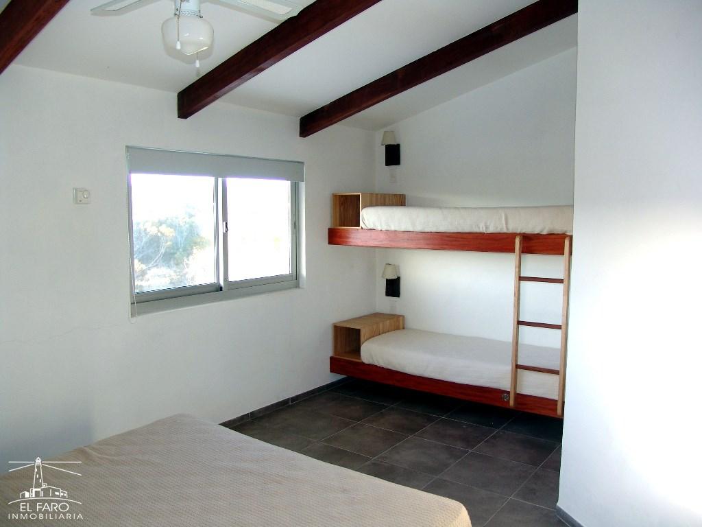 En planta alta, 3 dormitorios: un matrimonial, otro con cama matrimonial y cucheta y el tercero con 2 camas individuales. Baño completo.