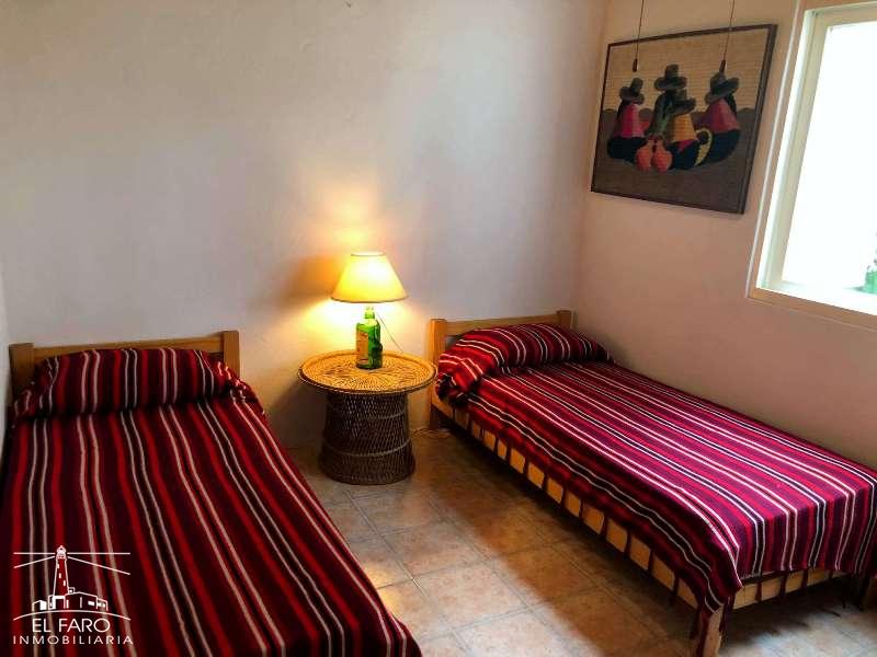 La casa tiene living comedor, cocina, 2 dormitorios: uno matrimonial y el otro con dos camas.